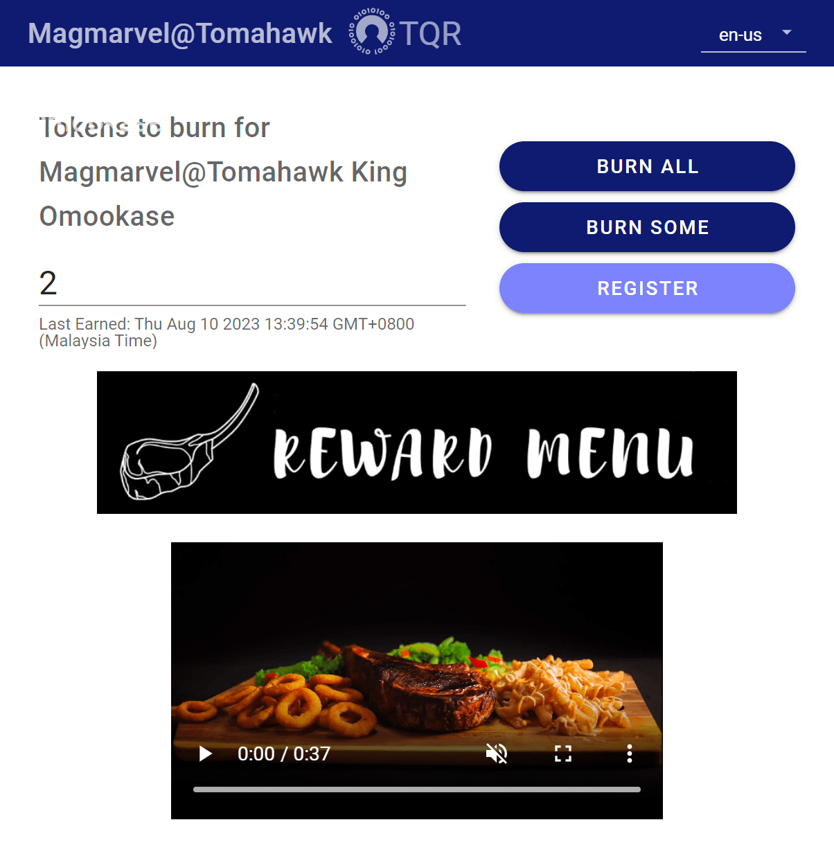 - Display Earn QR code at the checkout counter for customers to scan and earn tokens as a reward.